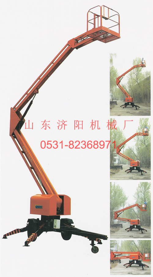 該系列升降機主要用于室外高空作業(yè)。折臂結(jié)構(gòu)緊湊,采用新型優(yōu)質(zhì)型鋼,強度高、重量輕、架設(shè)速度快,具有自動液壓支腿,工作臺既可升高又可水平延伸,還可旋轉(zhuǎn)??刹捎媒涣麟娫磫樱子诳缭秸系K物到達工作位置,是理想的登高作業(yè)設(shè)備。該系列升降機廣泛用于市政、電力、路燈、公路、碼頭、廣告、廠礦車間大范圍作業(yè)。